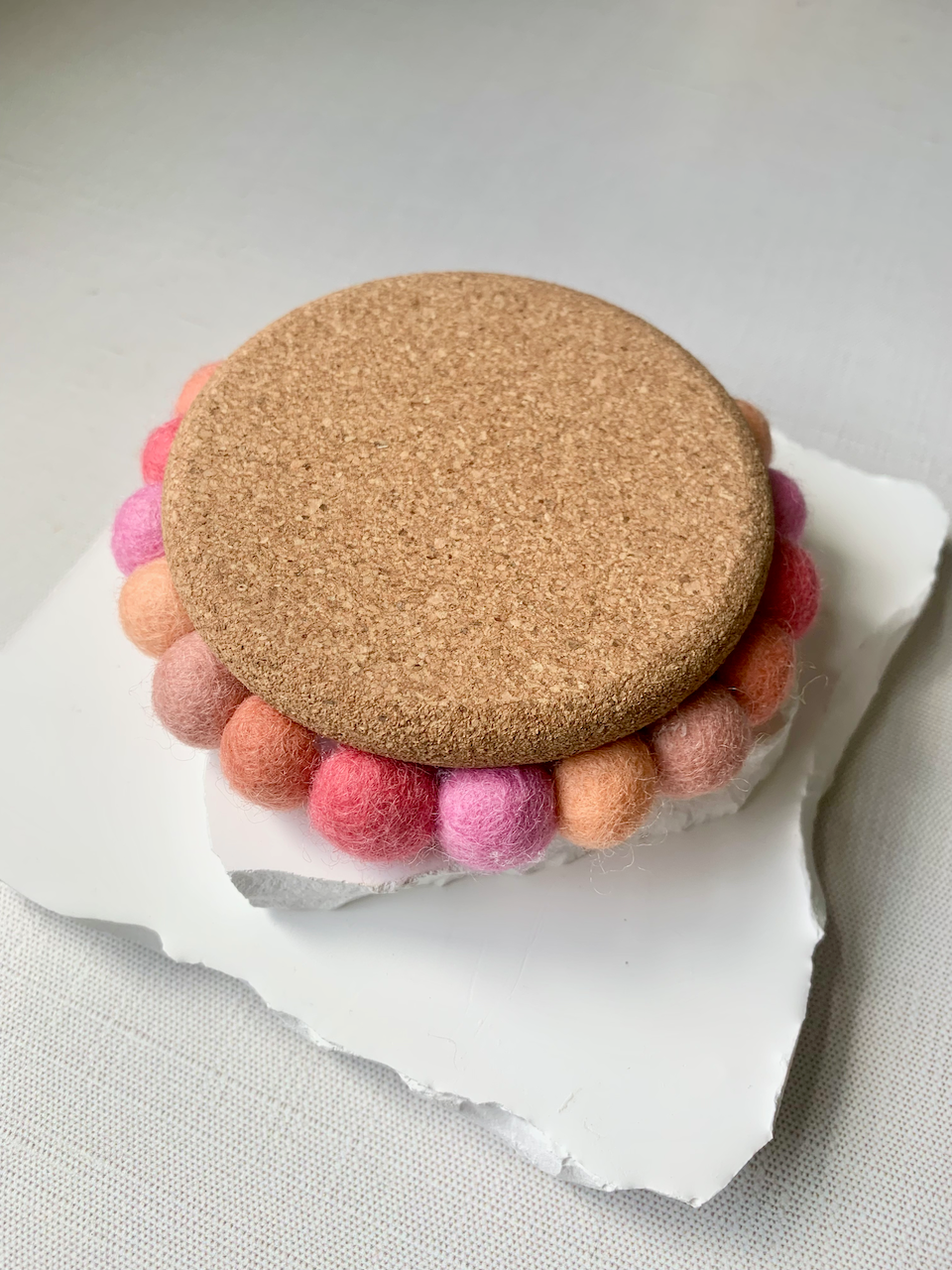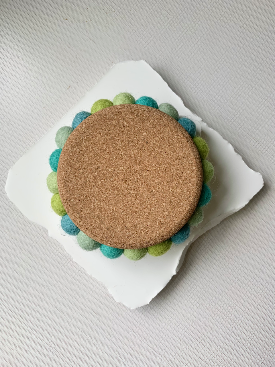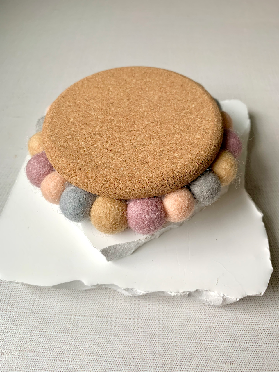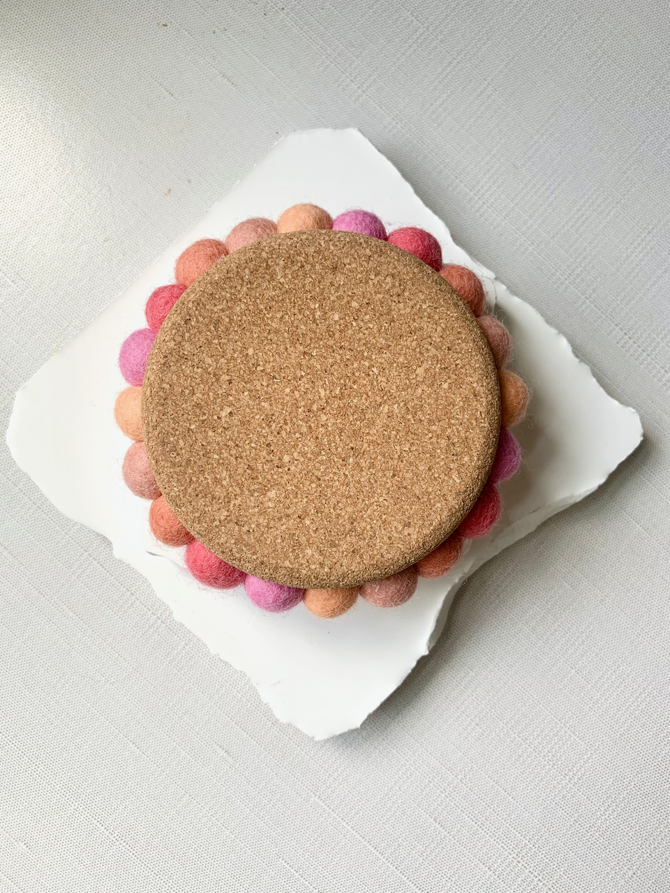 Add a pop of color to your home decor with these fun cork and felt 4" round coasters.