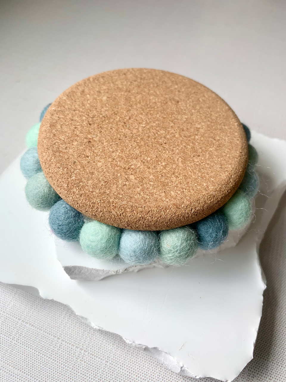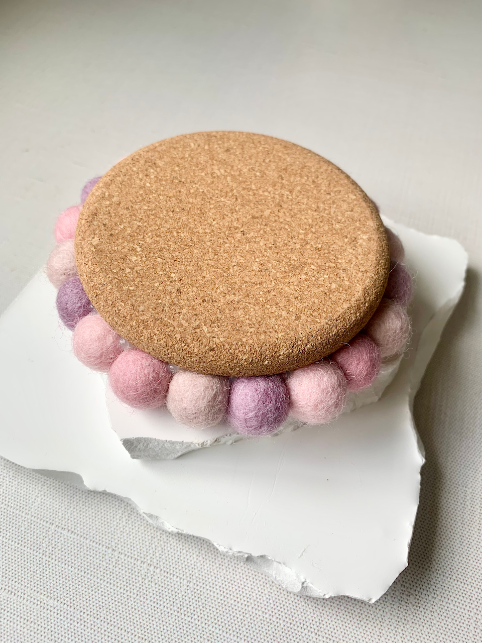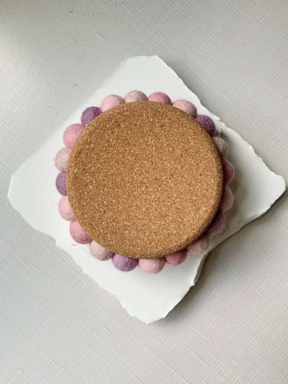 Add a pop of color to your home decor with these fun cork and felt 4" round coasters.