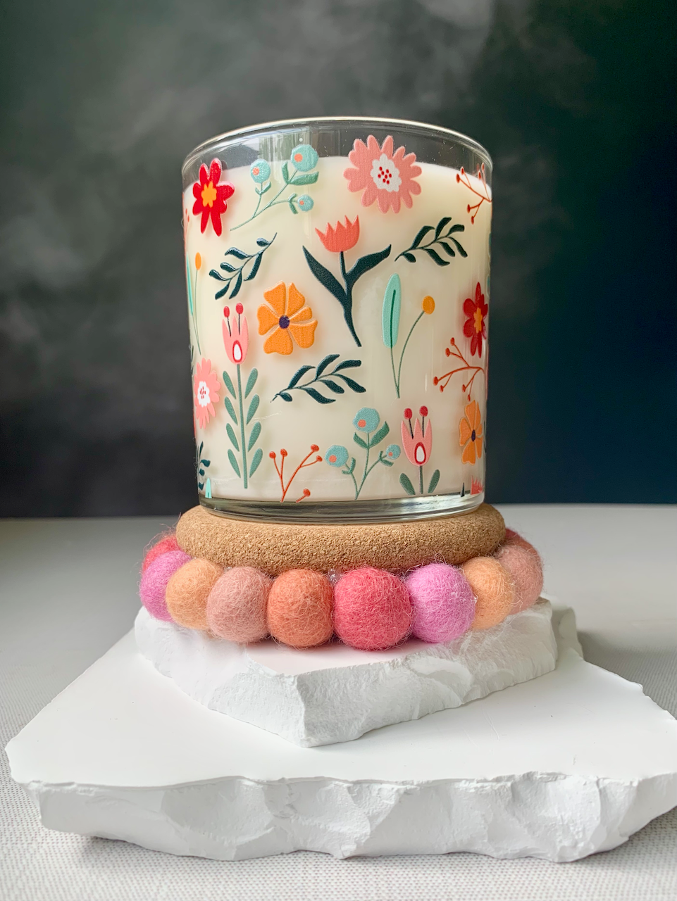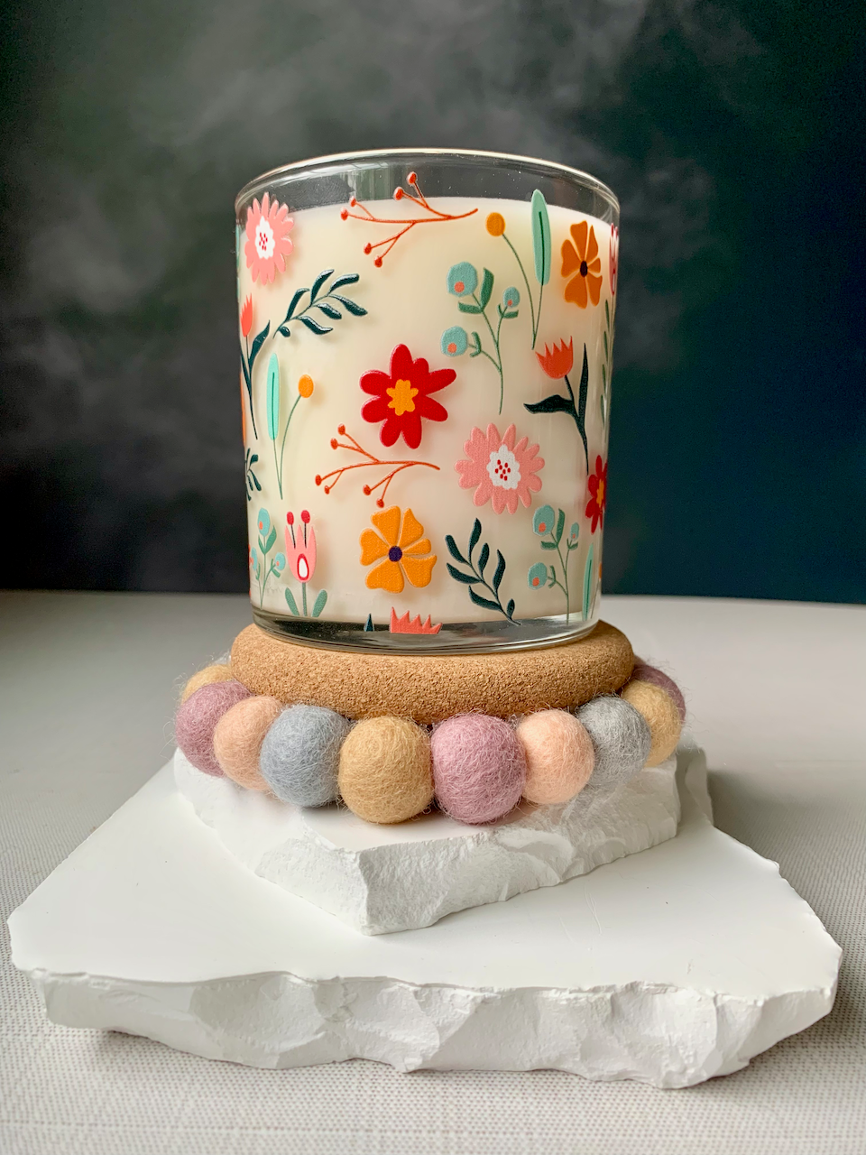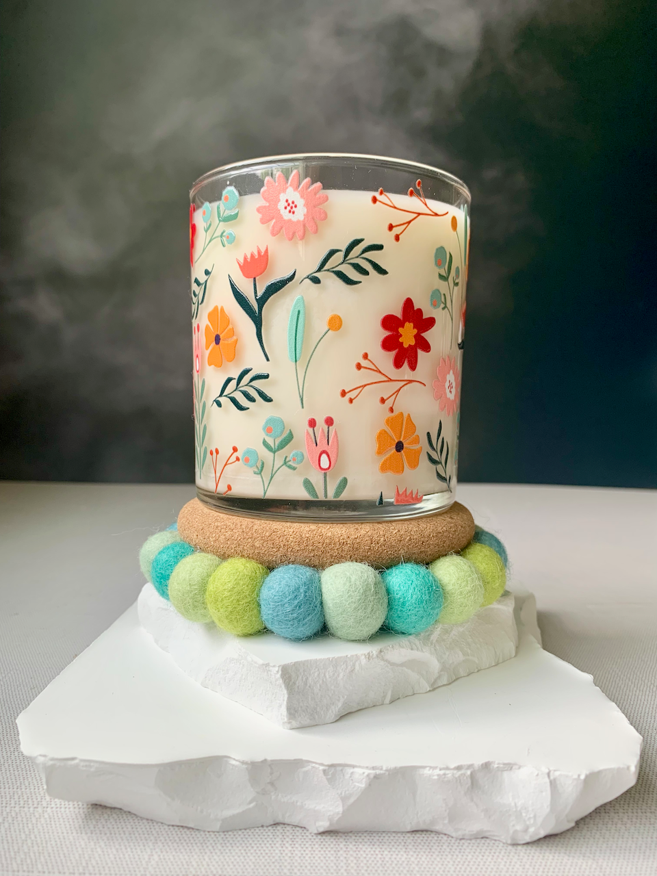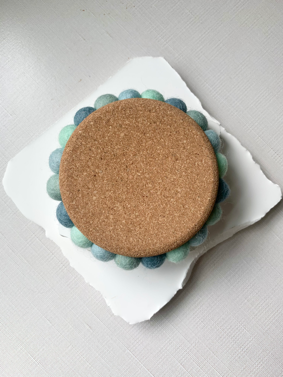 Add a pop of color to your home decor with these fun cork and felt 4" round coasters.